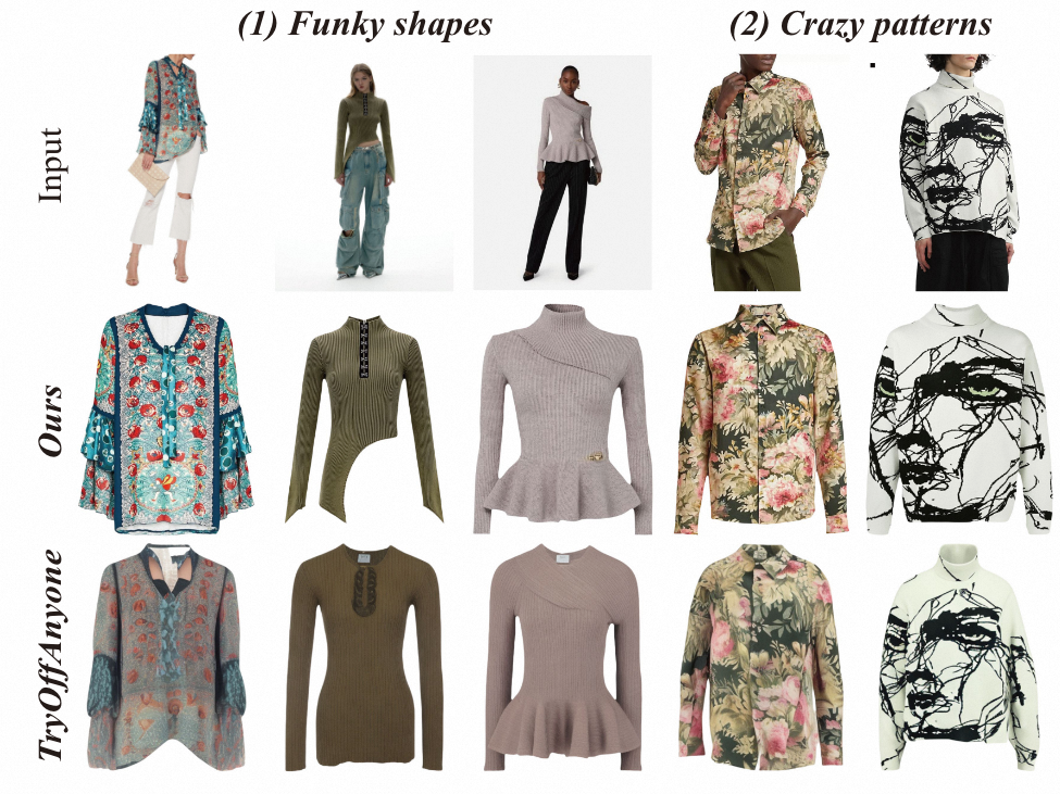 As RAGDiffusion works with real-world data, we provide more results to showcase how it handles super varied garments—like crazy patterns or funky designs.