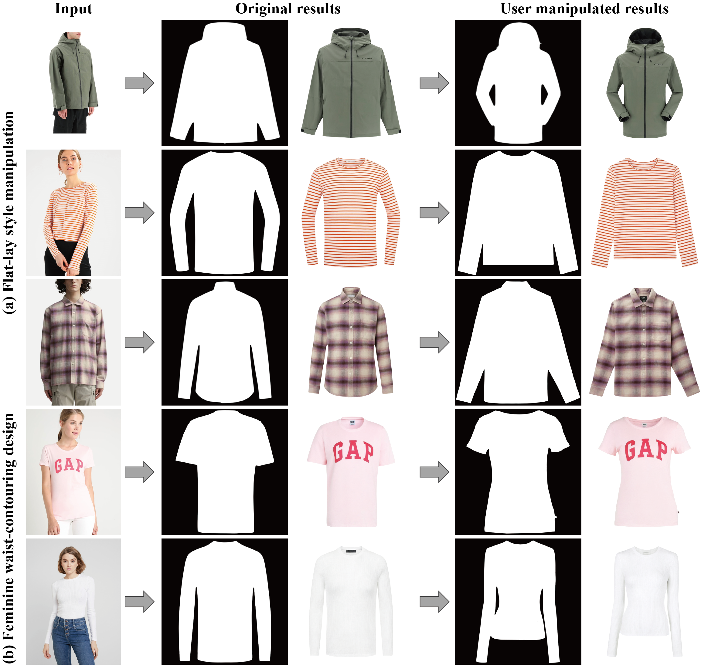 HUMAN CONTROL: By leveraging manipulation landmarks, our method enables users to perform fine-grained, intuitive control over the generated garment structure.
